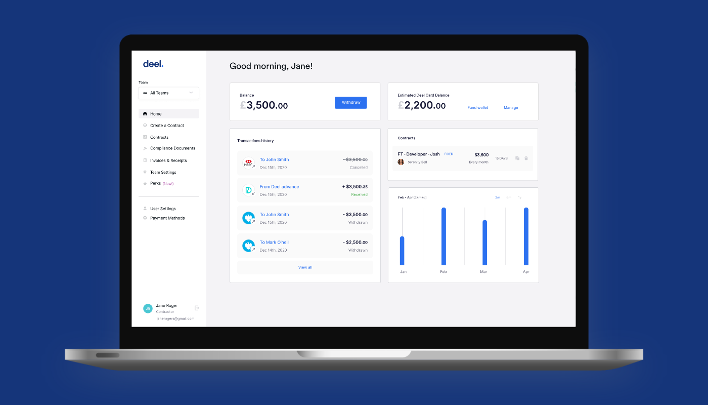 Herramienta especializada en contratación y gestión de pagos a tu equipo en cualquier parte del mundo.